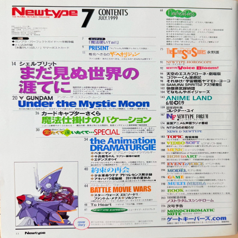 NewType 9907 뉴타입 일본 애니 잡지 고전 코믹 만화 일러스트