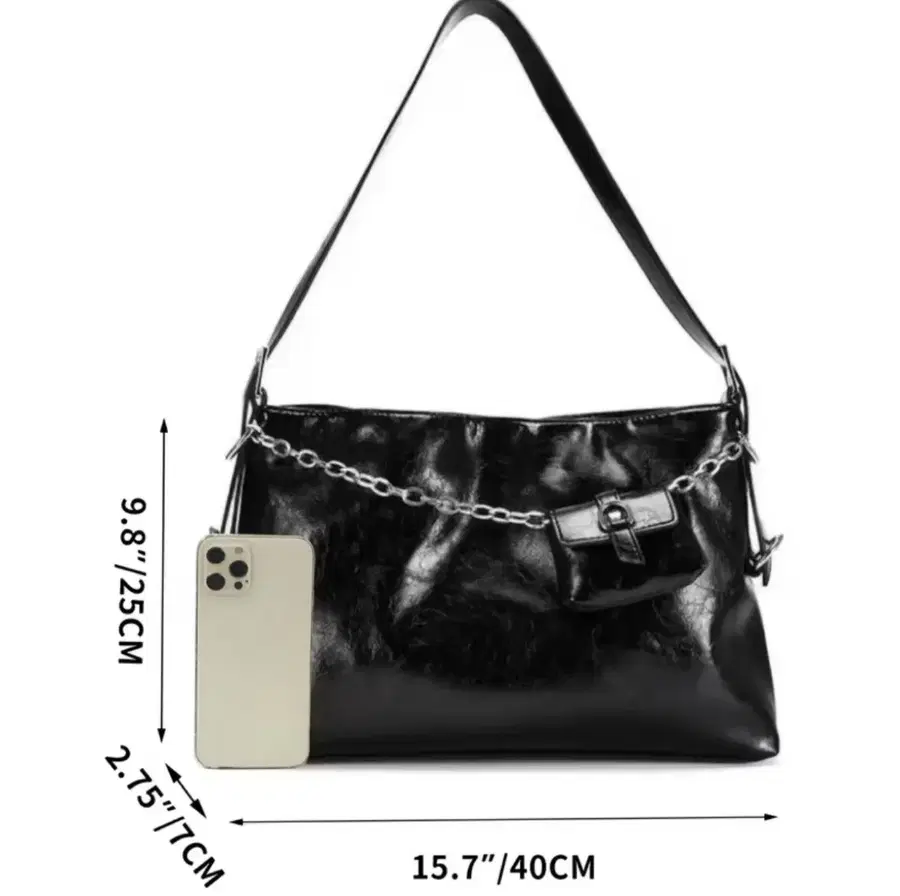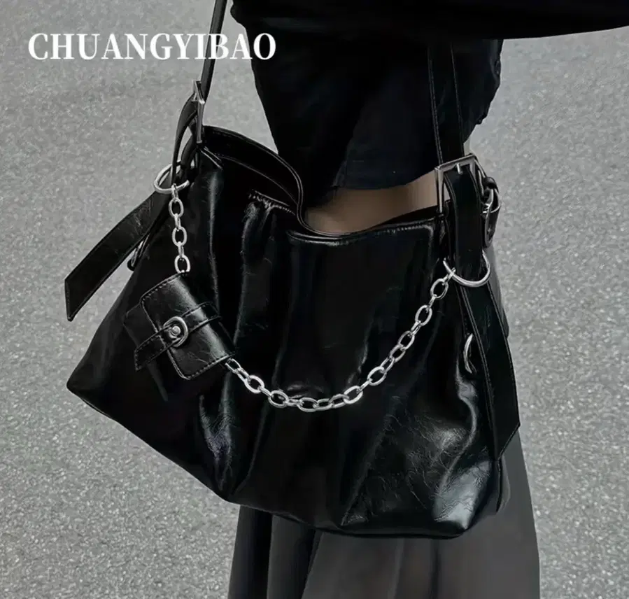 미개봉 상태의 CHUANGYIBAO 블랙 숄더백입니다. 은색 체인이 포인트로 달려있어 더욱 스타일리쉬합니다. 넉넉한 수납 공간으로 활용도가 높을 것 같아요. 별도 문의 없으시면 바로 안전결제 부탁드려요!