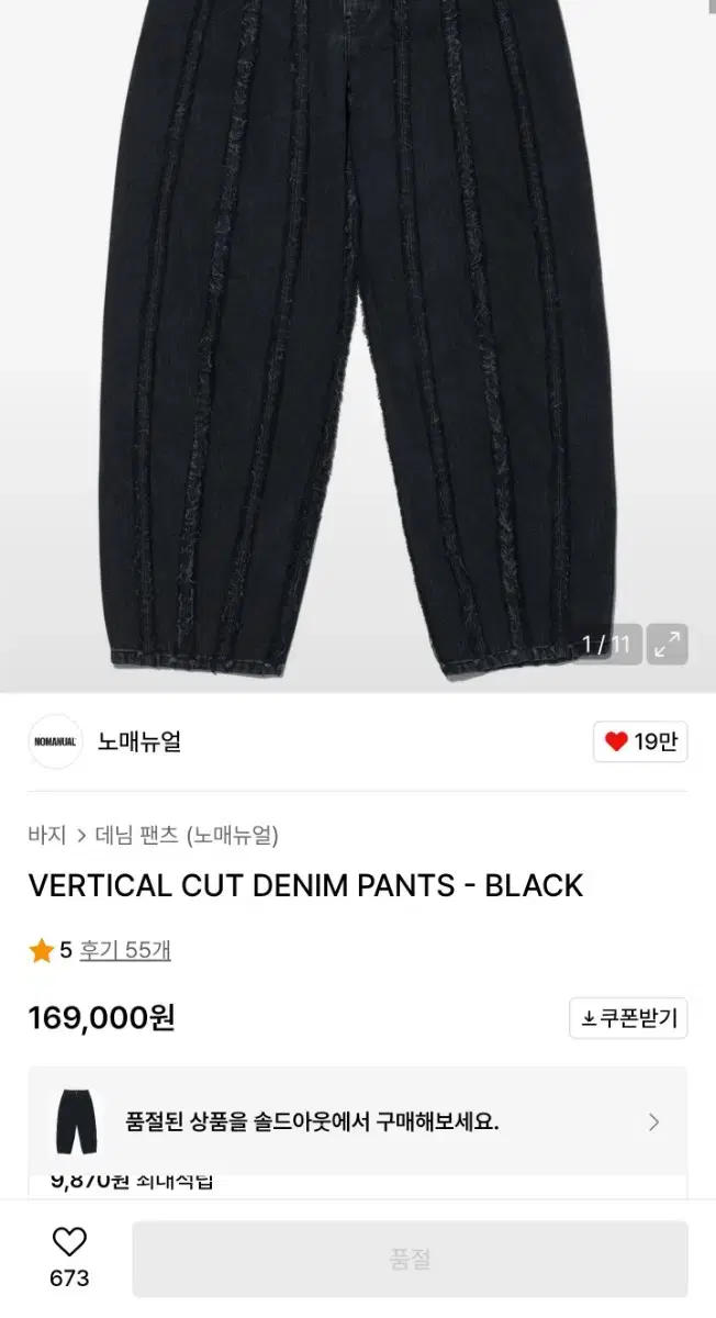 노매뉴얼 흑청 데님L