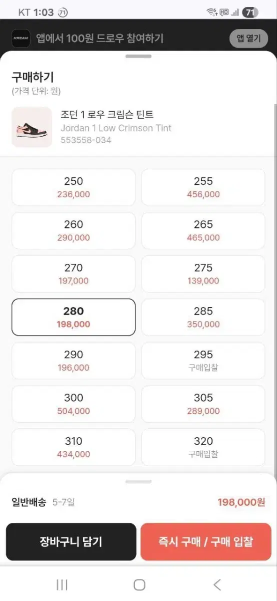 나이키 280 조던1 로우 크림슨틴트
