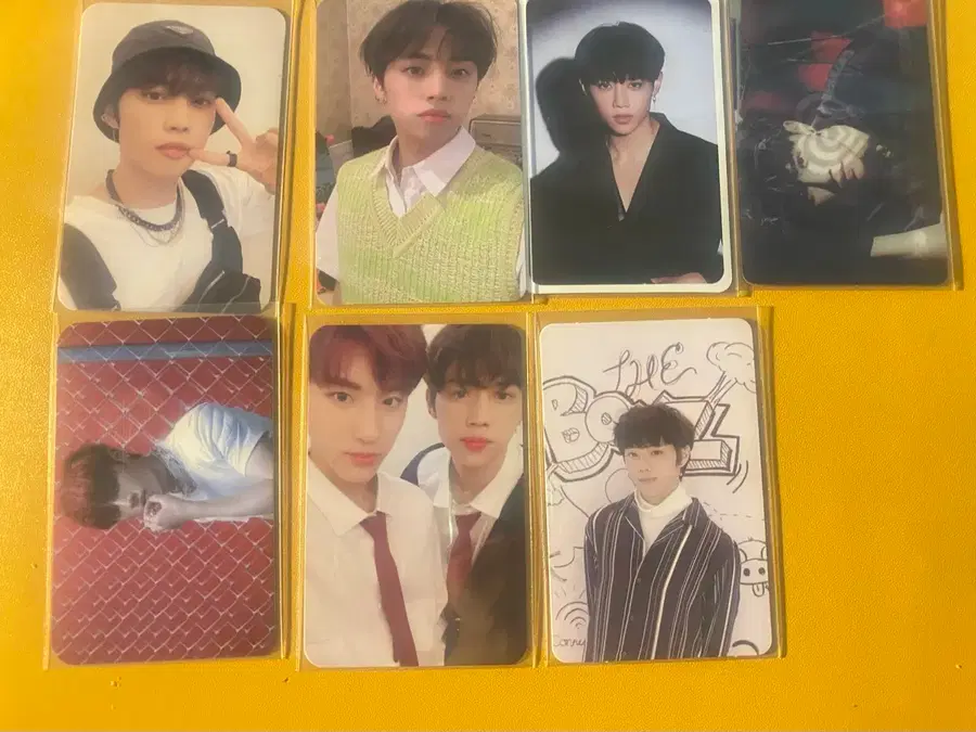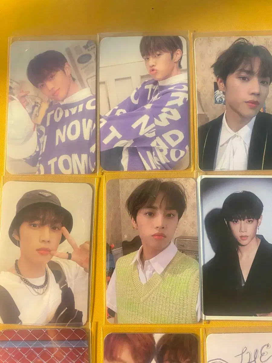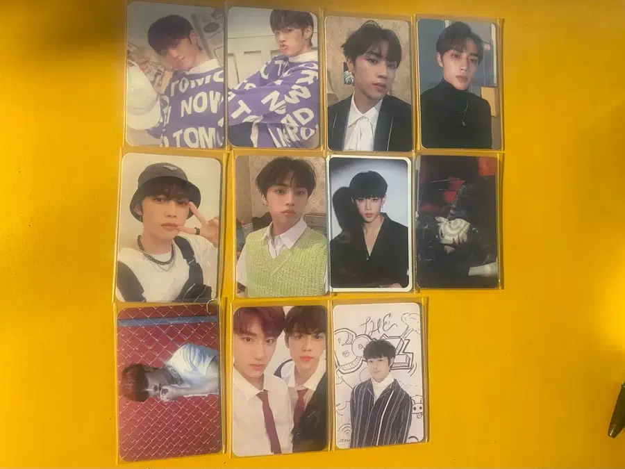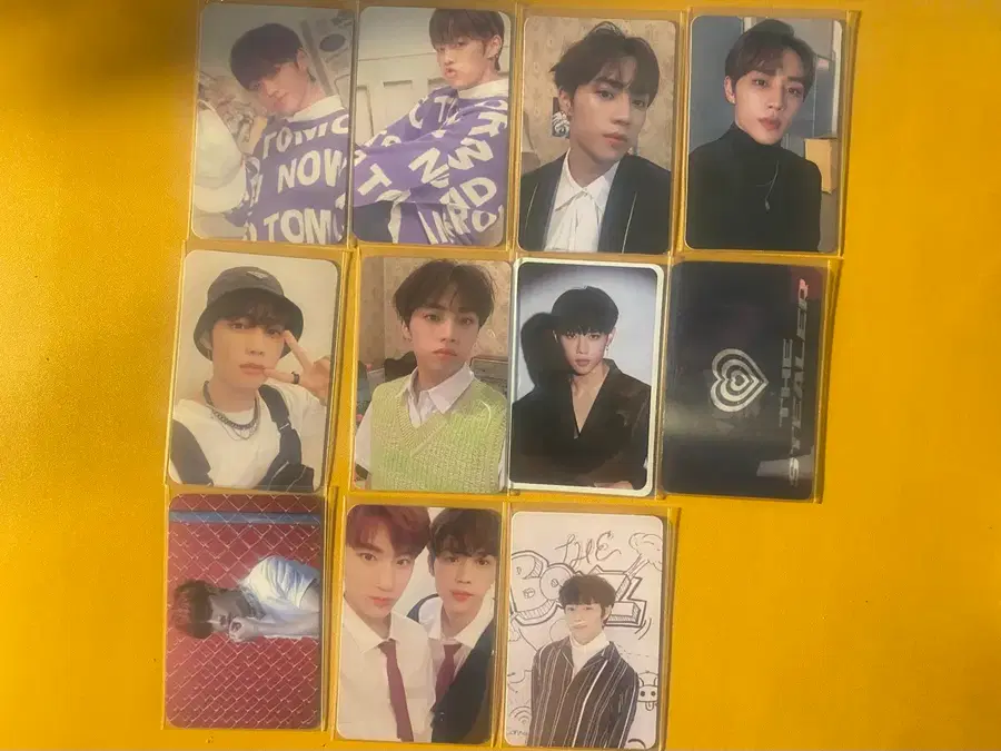 일본 쉬스더보스 포카와 더아지트 포카 포함해서 일괄 판매합니다. 맨 왼쫃 아래 빨간배경 포카 제외하고 스크레치 없습니다.
